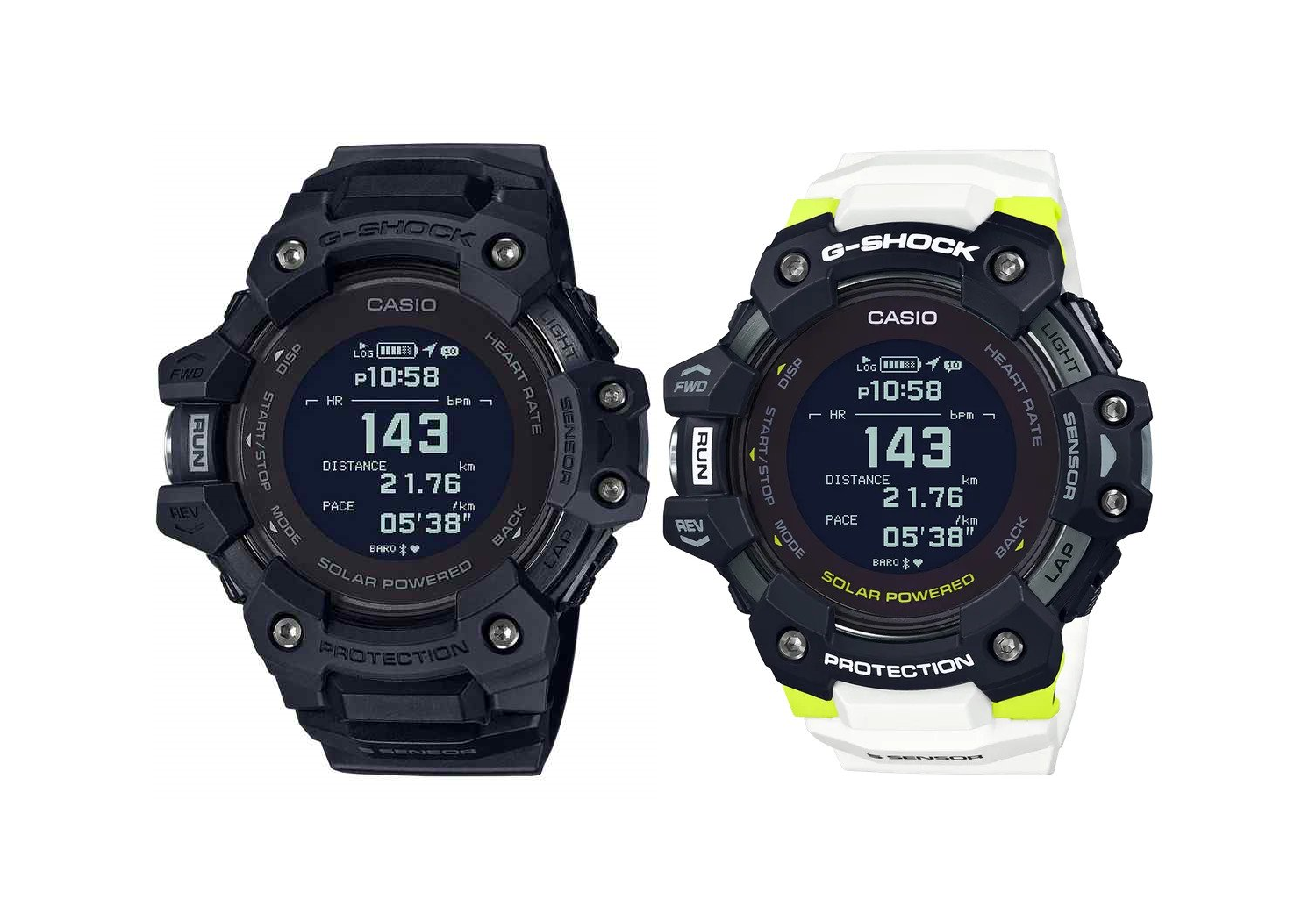 The surface form of the back covers of these models reduces interference with the back of the hand, while a soft urethane band provides a better fit to the wrist. Bi-color moulded buttons are designed for ease of use, while a high-definition MIP LCD makes display information more legible. Both USB and solar charging are supported, and solar charging can be used to power daily operation (except for pulse monitoring and GPS).