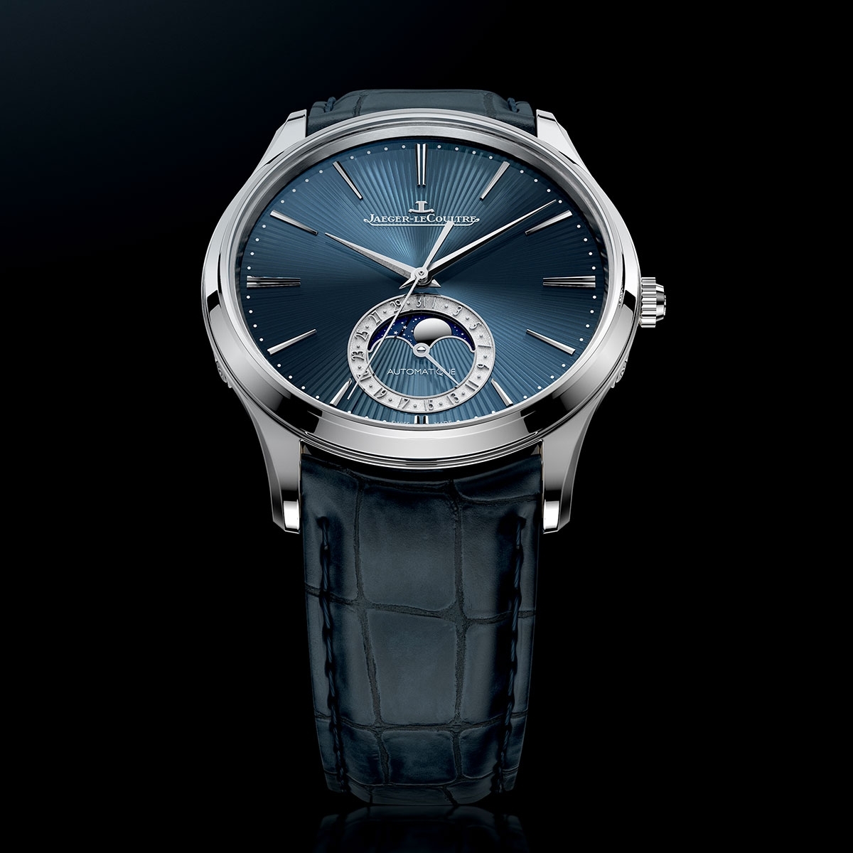 Issued in a limited series of 100 pieces, the new Master Ultra Thin Moon Enamel proudly expresses its character in a pure and refined watchmaking style, which translates directly into a new hand-guilloché blue enamel dial, new hour-markers, a new polished moon, and a new engraved counter. Its extremely thin case in white gold (10.04 mm) conceals its engine, the Jaeger‑LeCoultre Caliber 925, an automatic mechanical movement with a 70-hour power reserve.