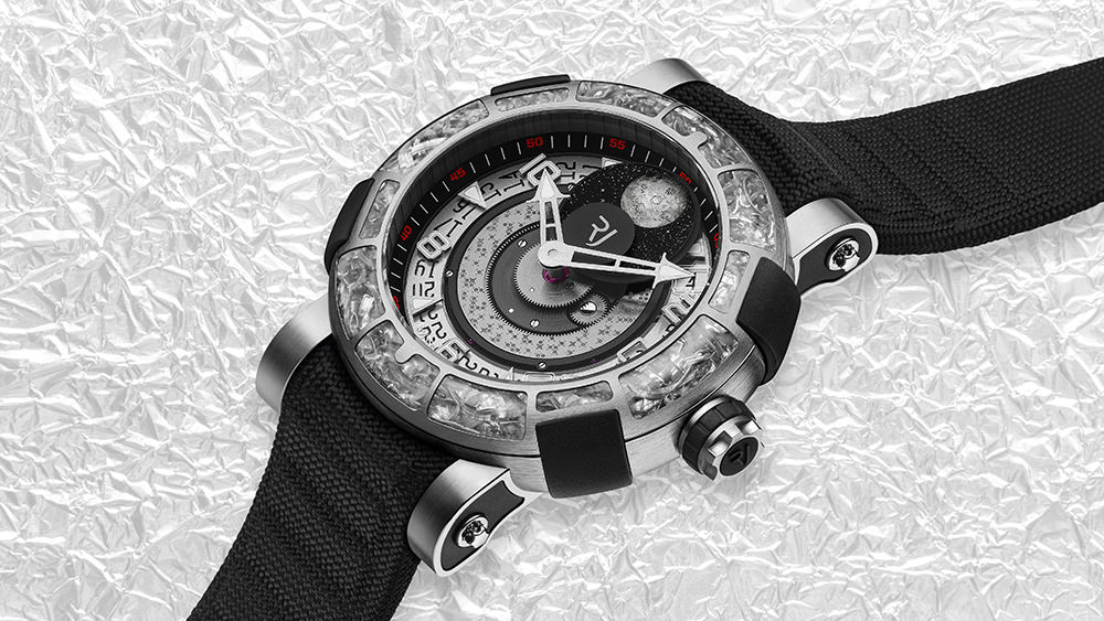 Apollo 11 spacecraft successfully landed the first men on the moon on 1969 . Six hours after landing, Armstrong’s first-ever step onto the lunar surface became a legend worldwide. Just 50 years later (1969–2019), to celebrate this major milestone in mankind, RJ is launching its first watch made by materials from the very surface of the moon – the ARRAW 6919.