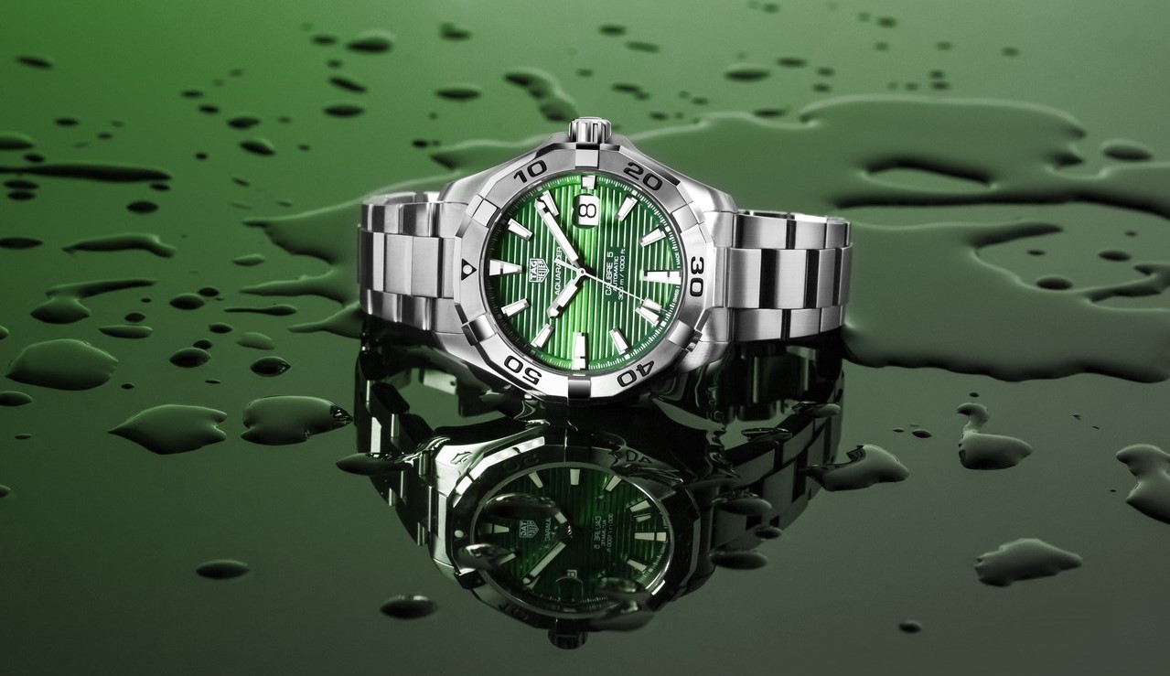 Ocean is the new inspiration for the latest Emerald Green Aquaracer from Tag Heuer, Available in both gents and ladies variants.The new Aquaracer timepieces are sporty and dive ready with all the features of a dive watch including unidirectional bezel,water resistance to 300 metres ,screw-down crown, luminescent hands and markers,double security clasp, and a sapphire crystal.